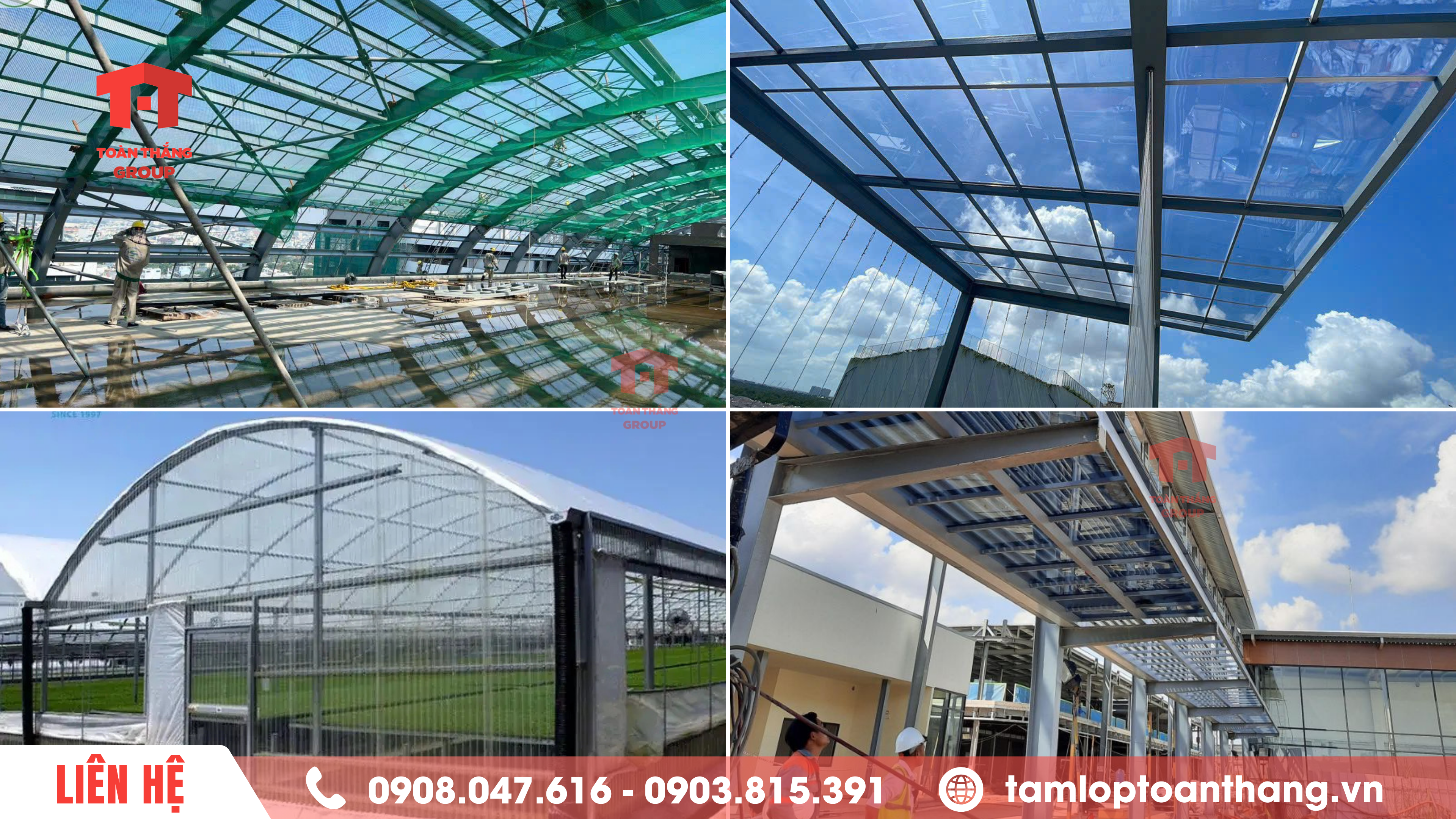 • Trang trại và khu chăn nuôi: Mái che chuồng trại, khu cho ăn, khu sơ chế cần ánh sáng tự nhiên và độ bền cao.