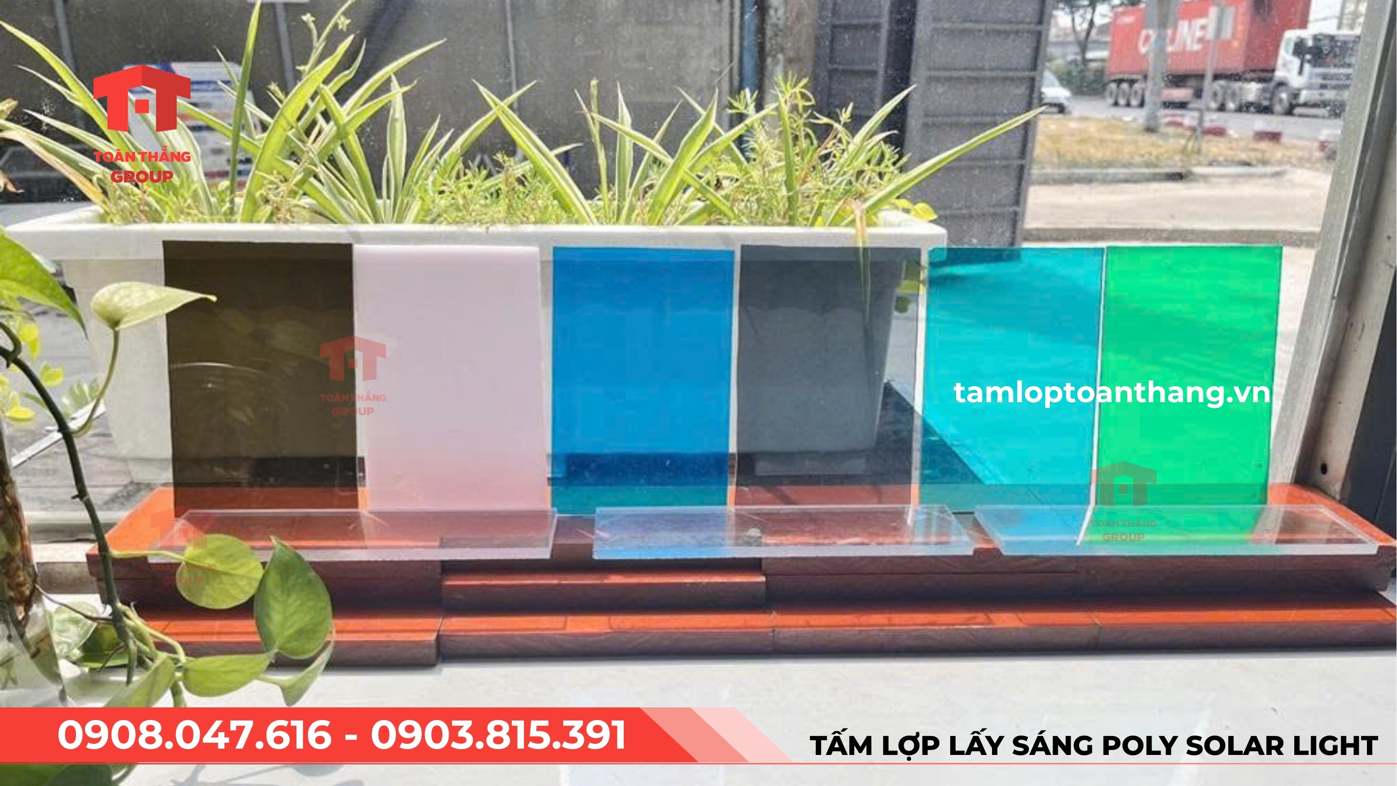 Tấm poly đặc có nhiều độ dày khác nhau (từ 2mm đến 10mm hoặc hơn) và màu sắc (trong suốt, trắng đục, xanh dương, xanh lá...). Việc lựa chọn cần dựa trên mục đích sử dụng: